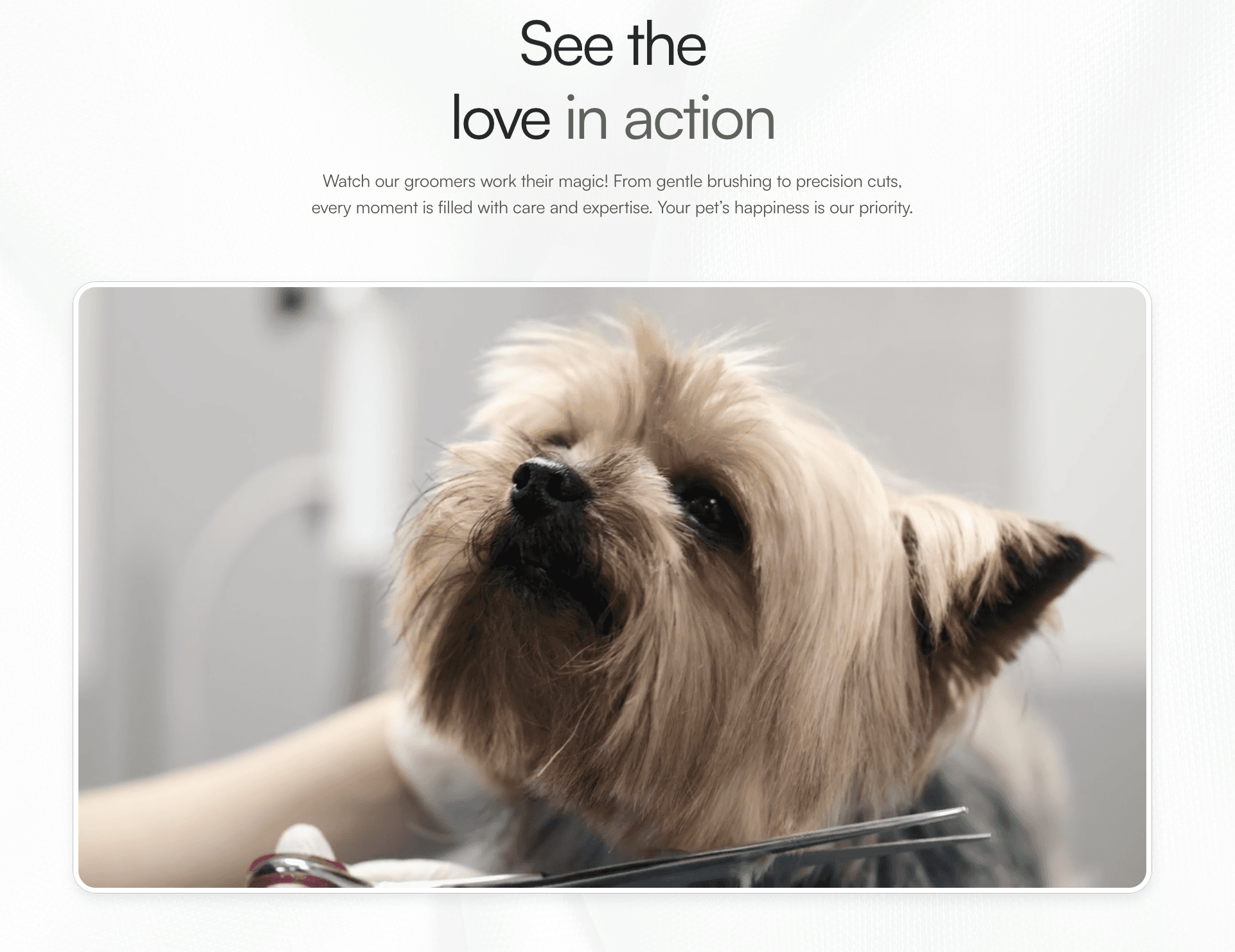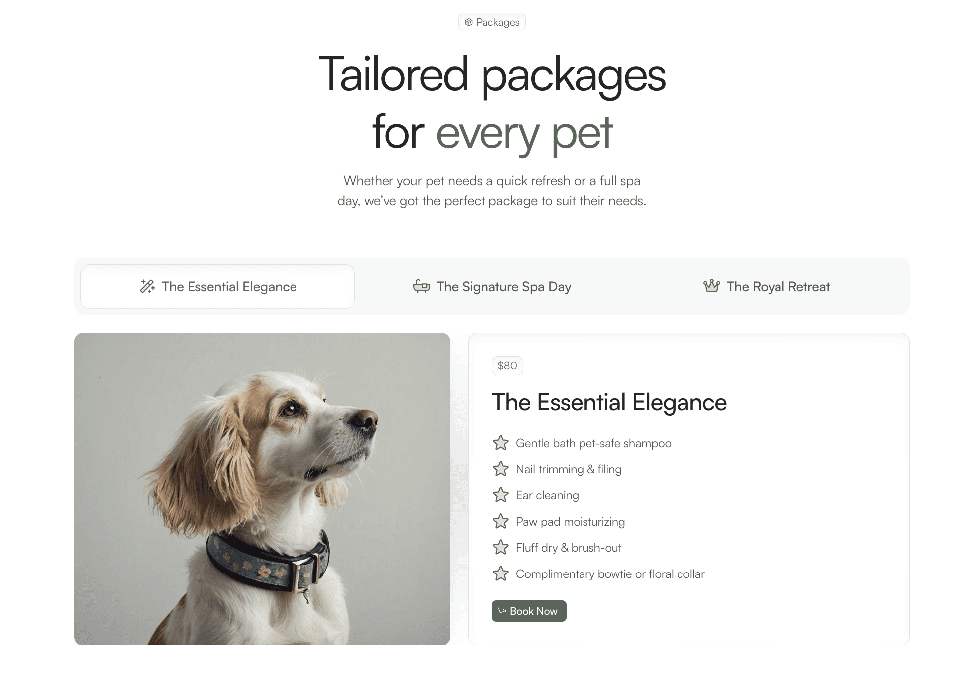 This concept focuses on creating a clean, inviting experience for pet owners seeking grooming services.