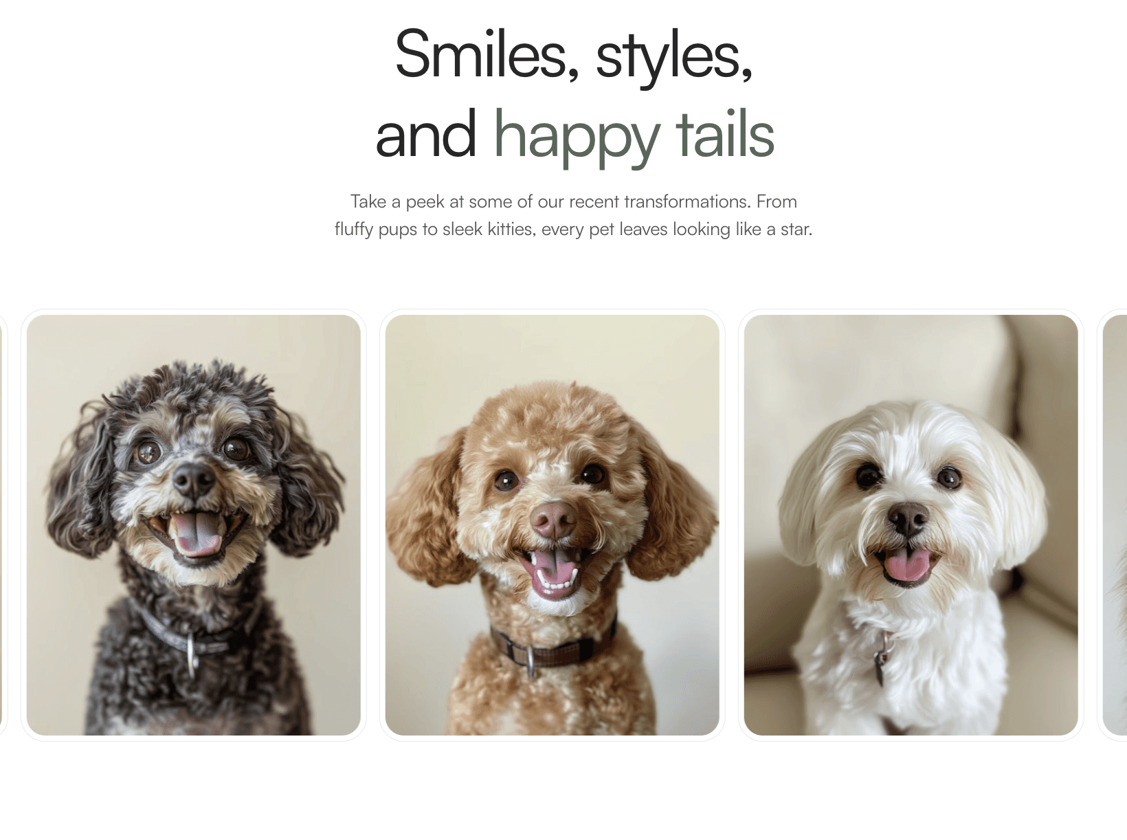 A bright and friendly grooming website concept designed to showcase services, pricing, and brand personality in a warm and welcoming way.